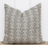 Pillow features a delicate gray floral motif pattern hand block printed using traditional printing techniques, we love the soft color and texture that gives this fabric so much character. Made using incredibly soft linen, it is a bit of modern, a bit of boho, and loads of warmth. Case only. Faux down filler can be purchases separately.